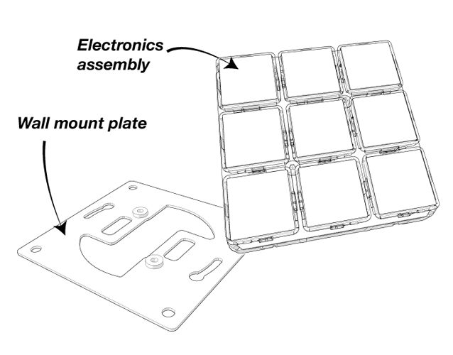 Installing the LanBox Interface is easy. You need to mount the included steel plate to the wall or onto a standard junction box. The electronics assembly is mounted to this steel plate. The electronics assembly houses all buttons, electronics, connectors and two mounting screws. Using the included hex key you can quickly secure the electronics assembly on the steel plate.