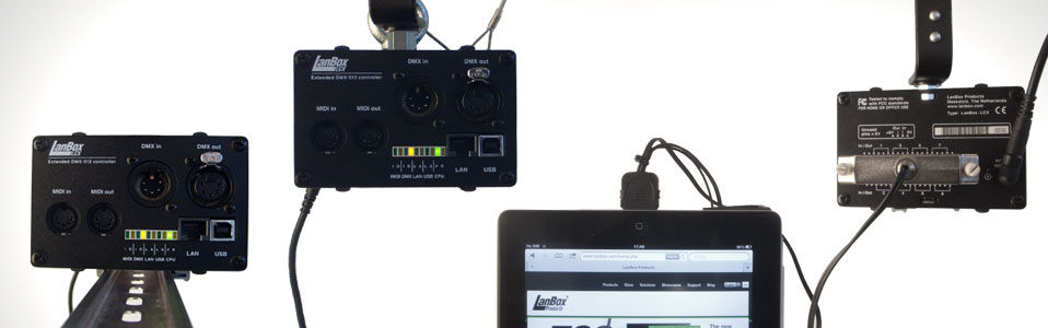 The LanBox-LCX is a powerful and versatile controller. It is equipped with Ethernet, USB, MIDI in and out, DMX in and out, eight analogue inputs and eight digital outputs. All these inputs and outputs can be connected and programmed. For example, you can use analogue faders to directly control programmed DMX cues inside the LanBox-LCX. Or you can use Art-Net data to trigger cues that will start up to eight RS-232 controlled devices like the iPad. Or you can use the DMX input to send MIDI messages. Or everything at the same time of course. This is all done extremely reliable due to industrial grade hardware and firmware, and once programmed, it is done autonomously, without the use of a computer.